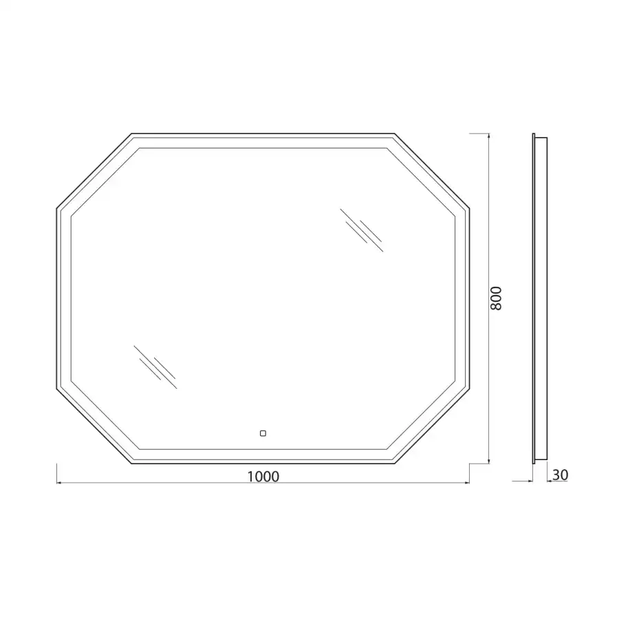 Зеркало с встроенным светильником и сенсорным выключателем SPC-OTT-1000-800-LED-TCH, 12W, 220-240V, 1000x30x800