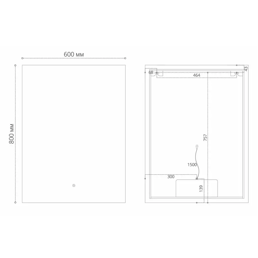 Зеркало Grossman PRAGMA-норма (600*800*45) LED с сенсорным выключателем и подогревом, 186080