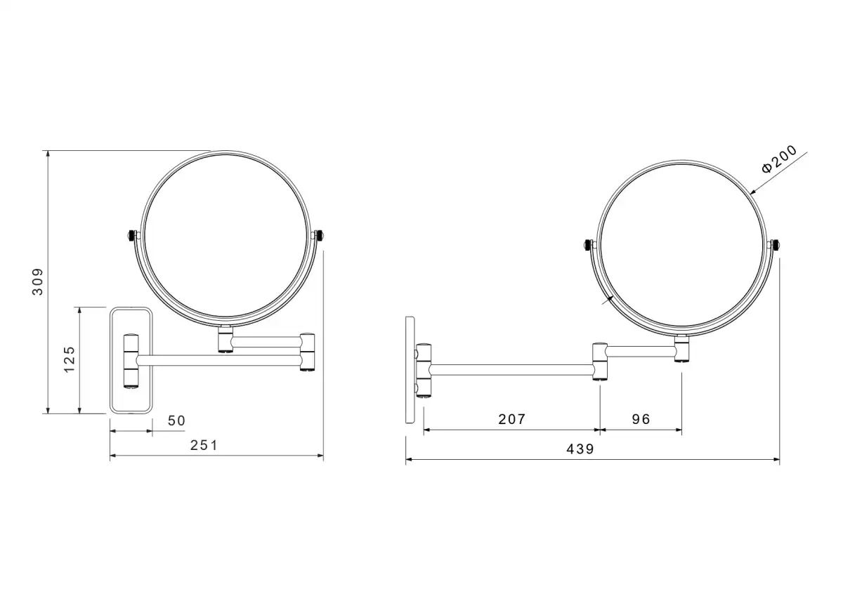 Зеркало косметическое Aquatek AQ4911MB настенное 5х, Черный матовый