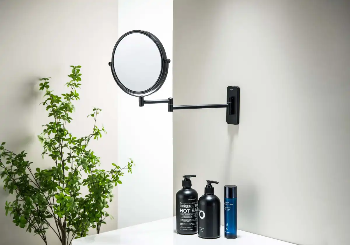 Зеркало косметическое Aquatek AQ4911MB настенное 5х, Черный матовый.