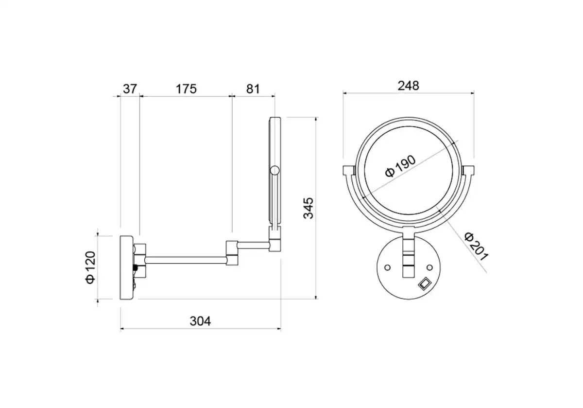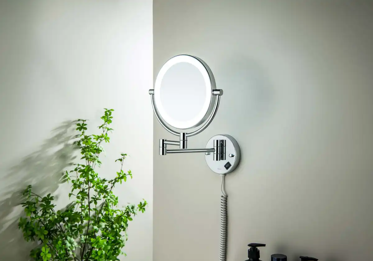 Зеркало косметическое Aquatek AQ4915CR настенное с подсветкой 5х, Хром.