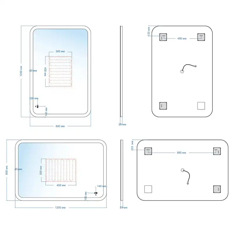 С подсветкой, С регулировкой яркости, С подогревом, С часами