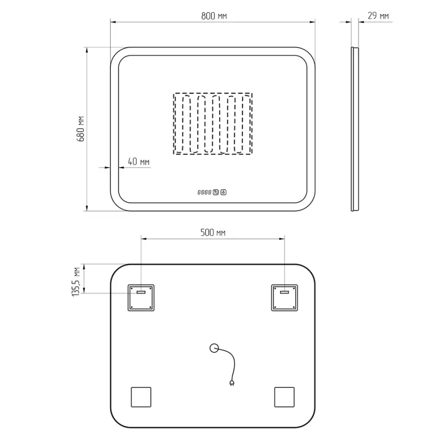 С подсветкой, С регулировкой яркости, С подогревом, С часами