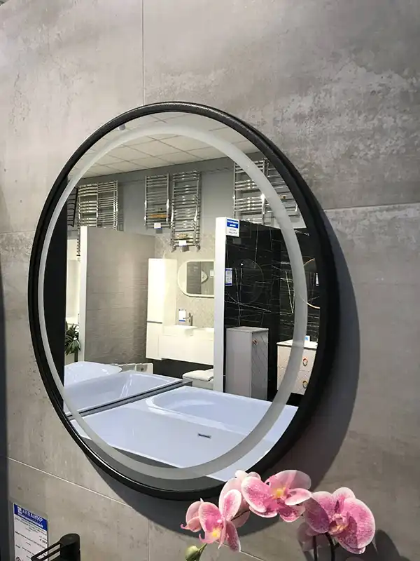 Зеркало с подсветкой AVS Мид 75x75 см, черное. Сенсорный выключатель с функцией димера