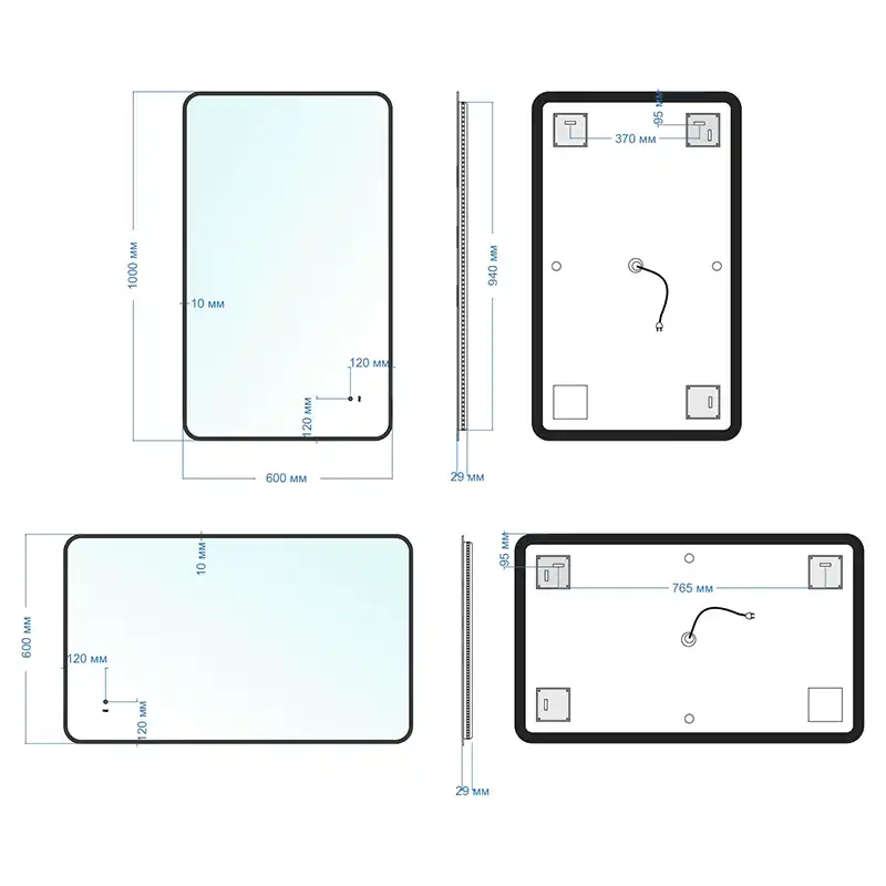 Зеркало с подсветкой AVS Неро 60x100 см, черное. Выключатель инфракрасный на взмах руки