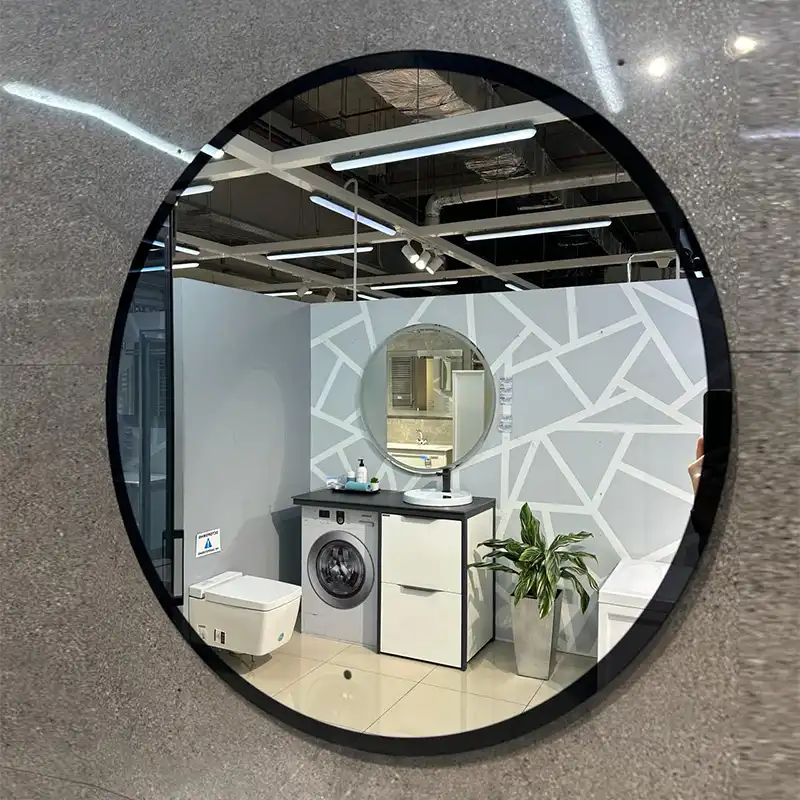 Зеркало с подсветкой AVS Виктория 75x75 см, черное. Выключатель инфракрасный на взмах руки