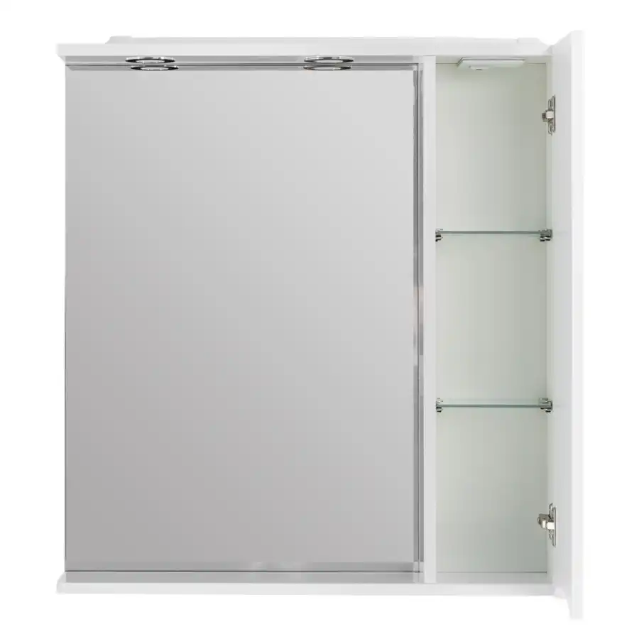 MARINO Шкаф зеркальный подвесной с одной распашной дверцей с доводчиками, LED 2x4W, правосторонний, Bianco Lucido, 700х150х750, MARINO-SPC-700/750-1A-BL-P-R