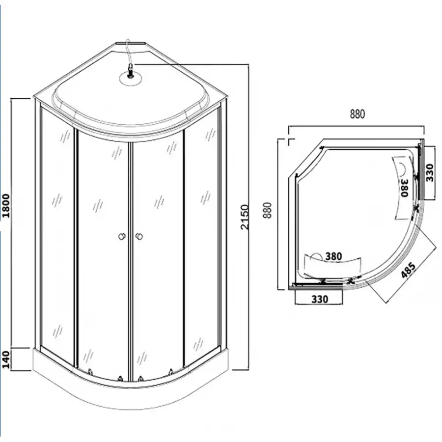 Душевая кабина Loranto 880х880х2150 белое заднее стекло, поддон 14 см, матовое стекло 4 мм, профиль хром матовый (CS-981TM/W-90)