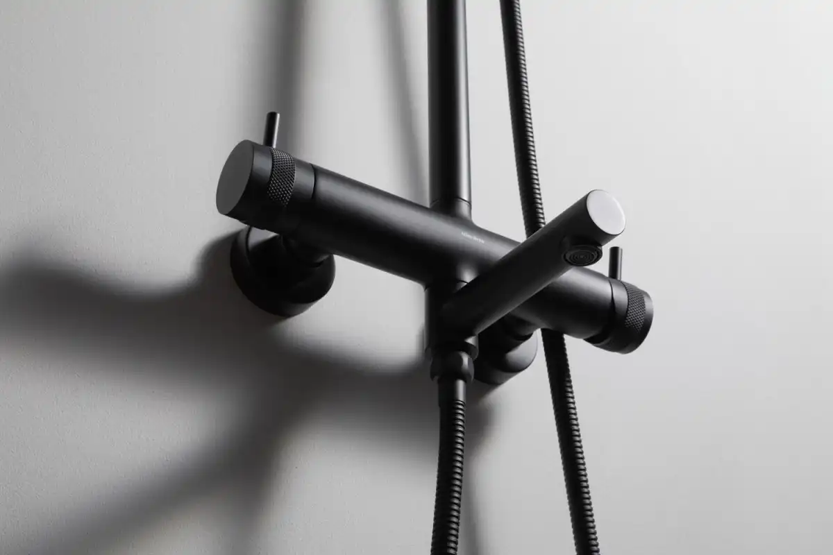 Душевая система Allen Brau Priority 5.31A10-31 для ванны с изливом, верхний и ручной душ, Черный матовый