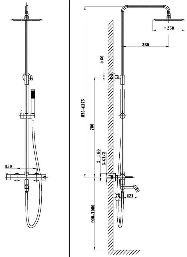 Vincea | Душевая стойка Villa VSFS-1VL1GM с изливом, верхний душ из нержавеющей стали D25, вороненая сталь.