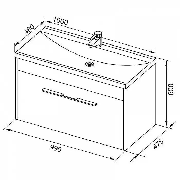 Раковина Aquanet Нота 100 284116 прямоугольная, Белая глянцевая