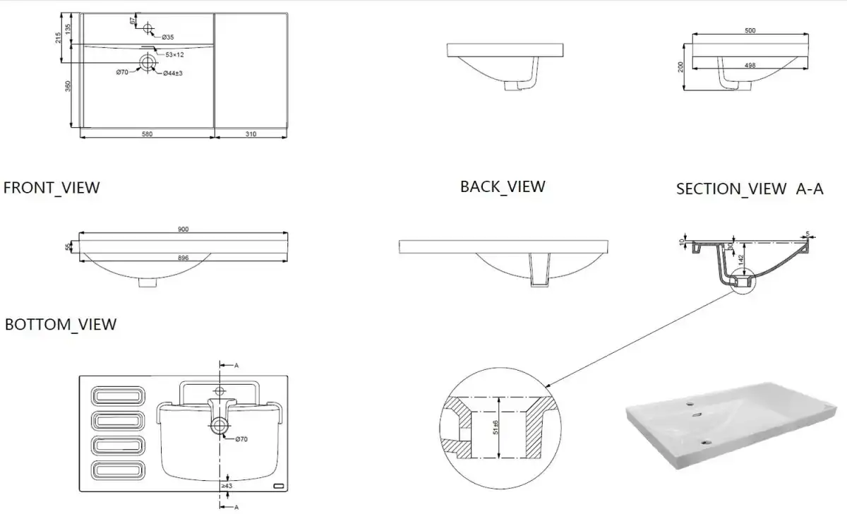 Раковина Aquanet Side 90 левая, белая, 347438 приобретается в комплекте с тумбой.