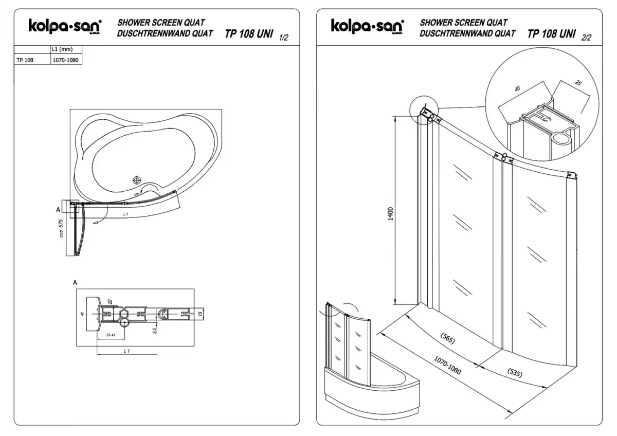 Описание Шторка для ванны Kolpa-San Quat TP 108 560002