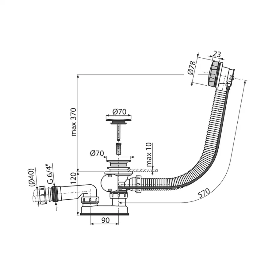 Alcaplast Сифон для ванны автомат комплект металл/металл длина 57 см AG210125261