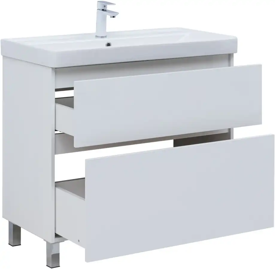 Тумба под раковину Aquanet Вега 90 напольная в отделке "белый глянец" – это воплощение элегантности и функциональности для современной ванной комнаты. Корпус и фасады, выполненные из влагостойкой ЛДСП с эмалевым покрытием, гарантируют долговечность и безупречный внешний вид, устойчивый к воздействию влаги. Глянцевая поверхность придает изделию изысканный блеск и легко очищается.