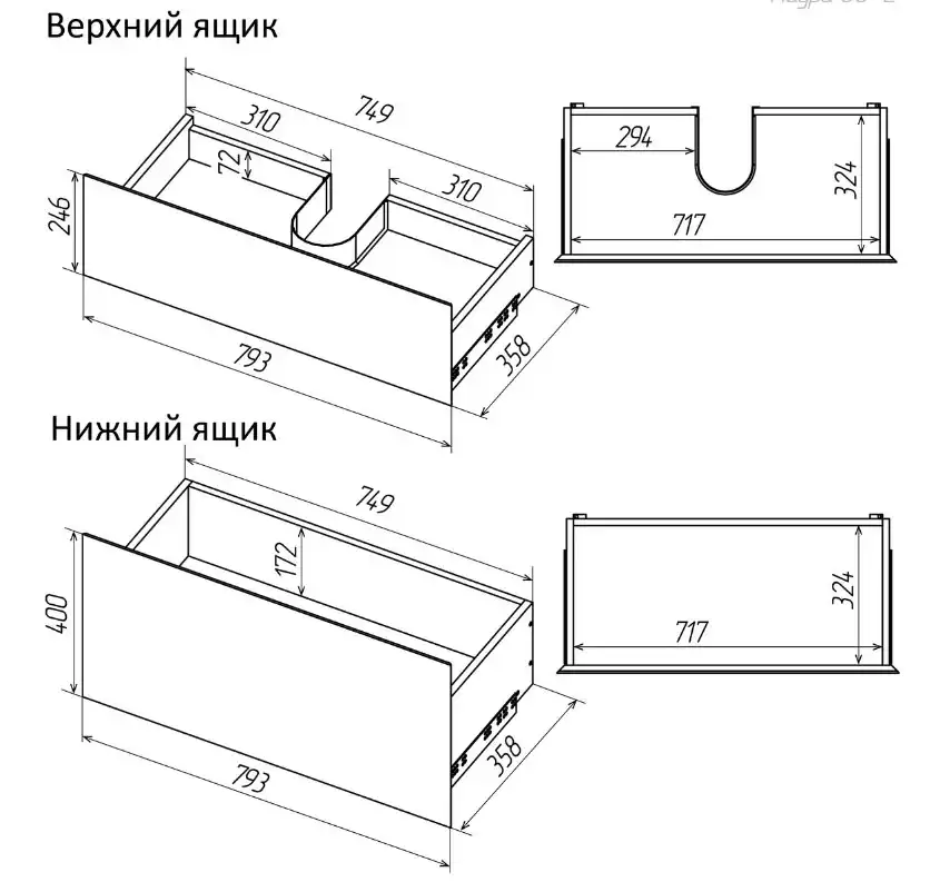 Тумба напольная Grossman "МЕРКАДО-80 см" с 2-я ящиками, графит матовая (ум. Classica-80), 108075.