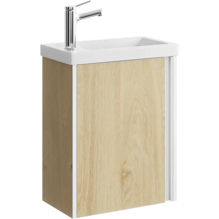 Подвесная тумба Aqwella Urban URB0145DD 45 см с одной универсальной дверью в цвете дуб давос, с умывальником Фостер 450