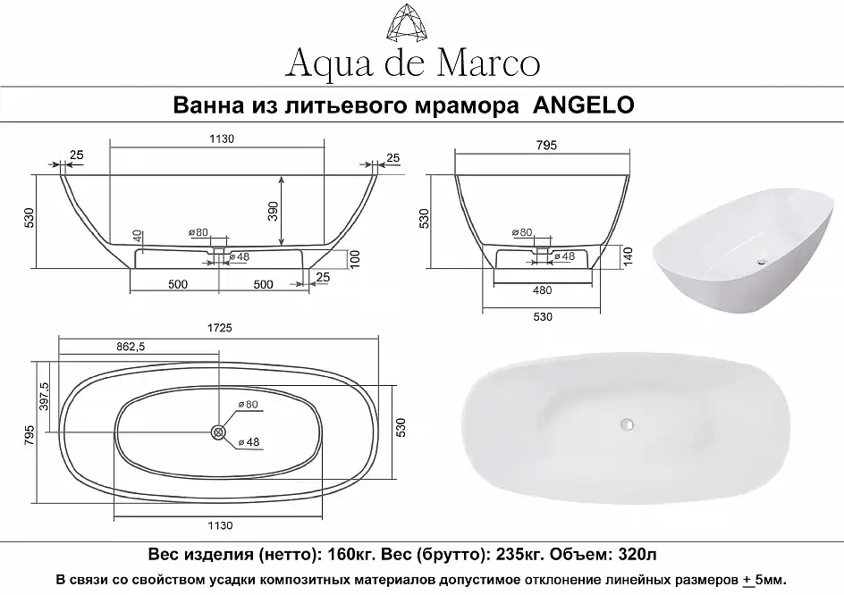 Современные ванны из литьевого мрамора Aqua de Marco не только восхитительно красивые, но и функциональные и соответствуют европейским стандартам качества. Литьевой мрамор - это экологически чистый материал на основе: