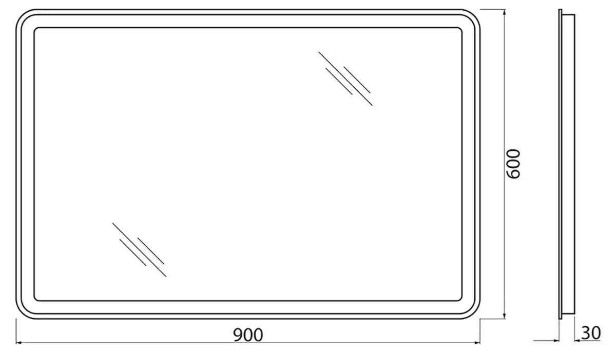 Зеркало с встроенным светильником и кнопочным выключателем SPC-MAR-900-600-LED-BTN, 12W, 220-240V, 900x30x600